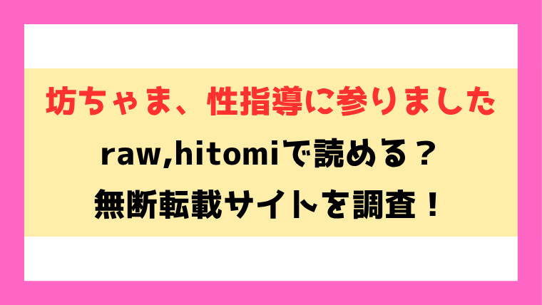 それでは今回は、「坊ちゃま、性指導に参りました(飛燕)無料rawやhitomiでの無断転載について調査!」と題してお届けしました。