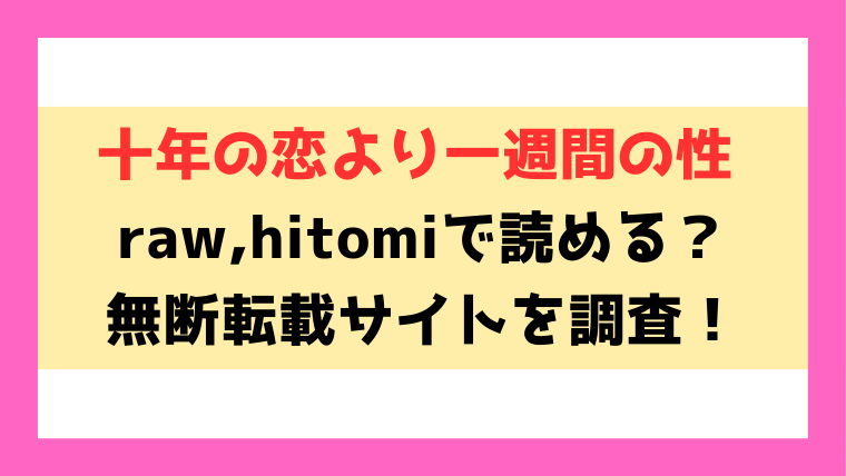 これまで「十年の恋より一週間の性 -Another Day-(美影)漫画rawやhitomiでの無断転載について調査!」のテーマでお伝えしてきました。