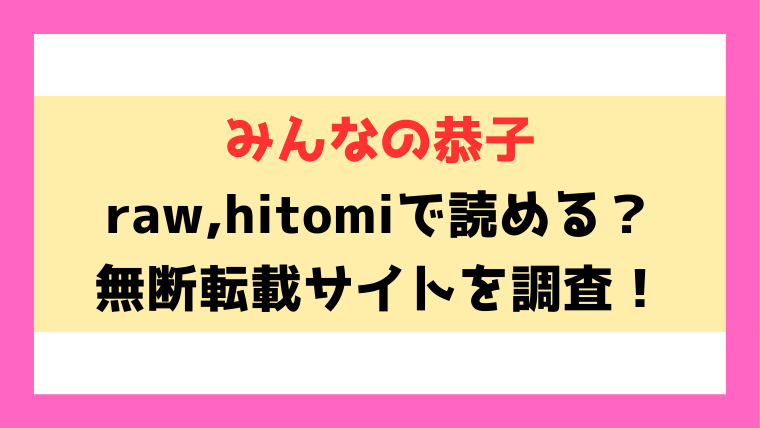 これまで「みんなの恭子(柴犬五郎)漫画rawやhitomiでの無断転載について調査!」のテーマでお伝えしてきました。