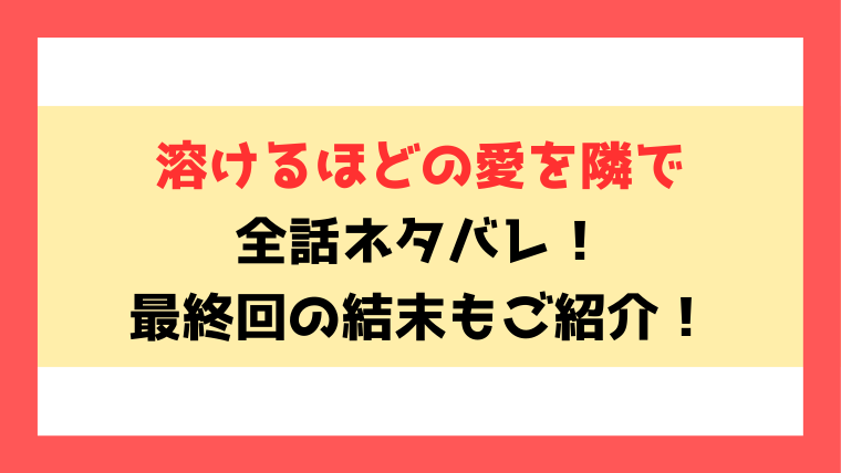 これまで”『溶けるほどの愛を隣で』全話ネタバレ!最終回・結末もご紹介!”のテーマでお伝えしてきました。