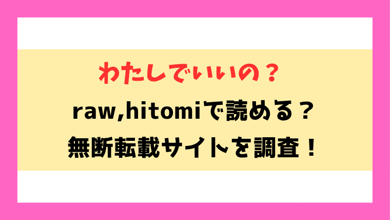これまで「わたしでいいの?(橙織ゆぶね)無料rawやhitomiでの無断転載について調査!」のテーマでお伝えしてきました。