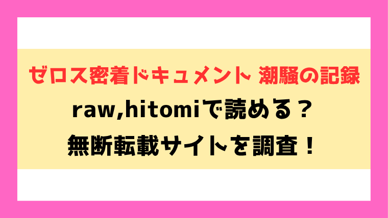これまで「ゼロス密着ドキュメント 潮騒の記録無料rawやhitomiでの無断転載について調査!」のテーマでお伝えしてきました。